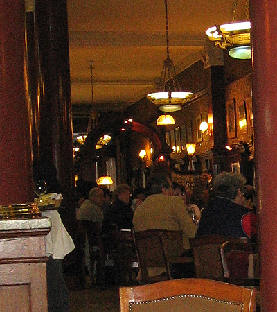 de un bar parisino. En el techo del salón resaltan imponentes vitreaux. En el