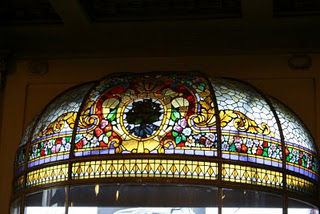 vitrales art nuveau forman grandes murales y cúpulas sobre las entradas al