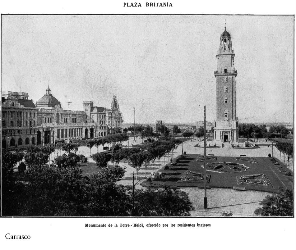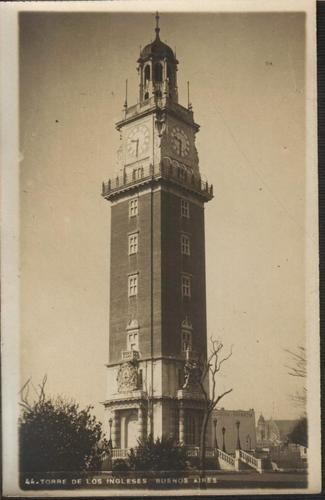 La Torre, en una foto de 1910, cuando aún no tenía el reloj -Recién se inaugura en 1916- las obras fueron lentas y la importación de materiales también. Fue su inauguración en plena sprimera guerra mundial.